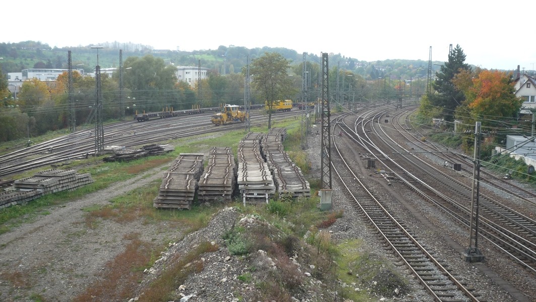 Blick von der Ulmer Straße auf das westliche Gleisvorfeld.