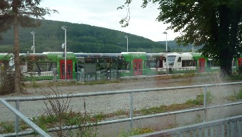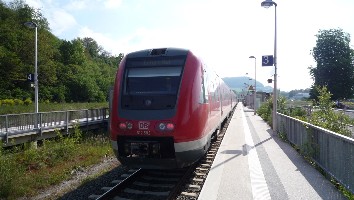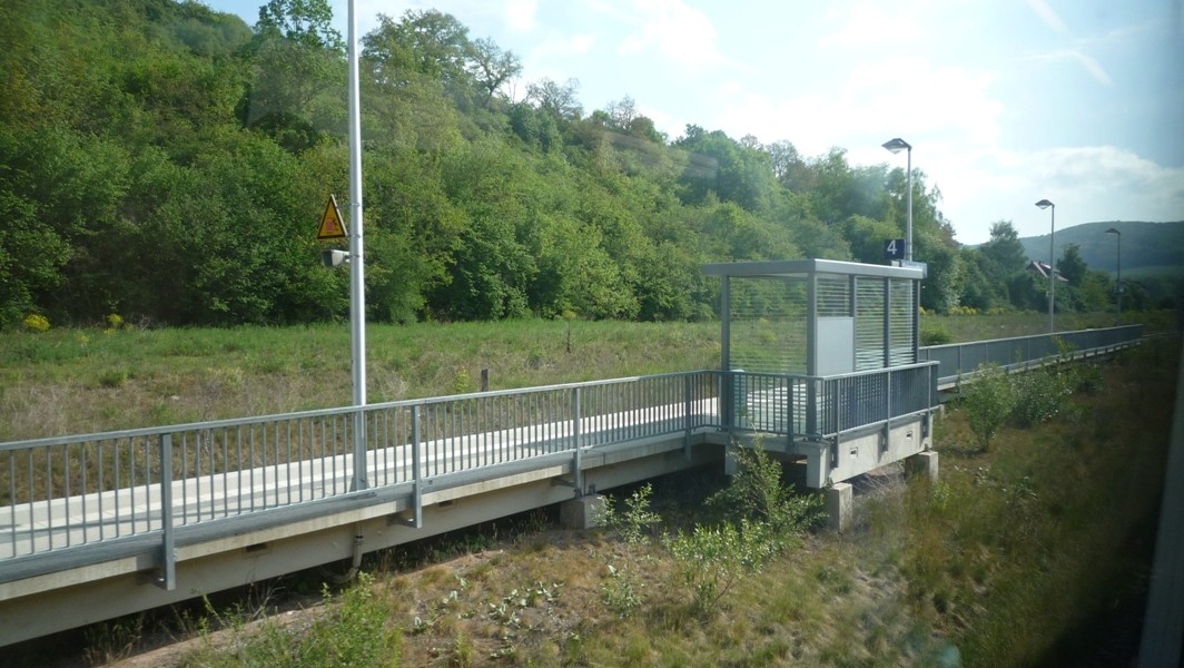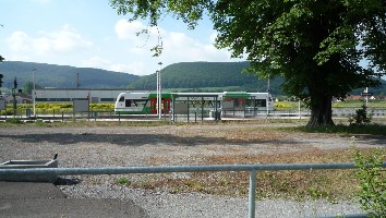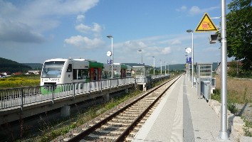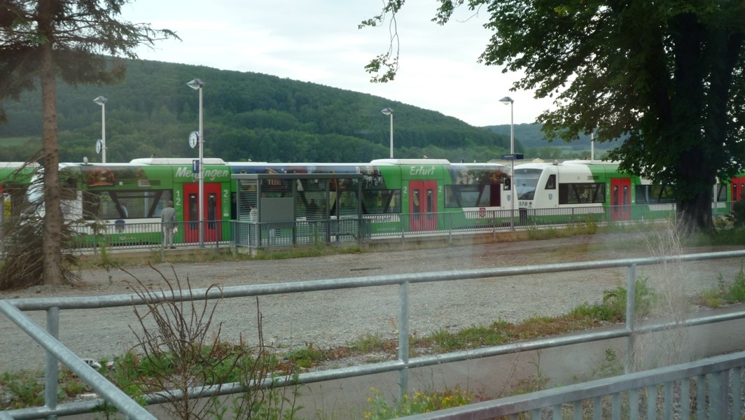 So lange die REs ohne Neigetechnik fahren und in Grimmenthal einen 10-minütigen Halt einlegen, kann man die Pause für einige Fotos vom Bahnhof nutzen.