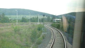 Auf der Rückfahrt von Erfurt nach Würzburg konnte ich um 18:31 eine STB Doppeltraktion nach Neuhaus sichten, die vordere Einheit wird jedoch in Sonneberg abgekoppelt. Vorne deshalb, weil in Rauenstein ein Richtungswechsel durchgeführt wird.