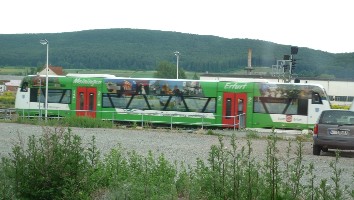 Auf Gleis 2 steht ein STB Triebwagen für die Weiterfahrt nach Eisfeld bereit.