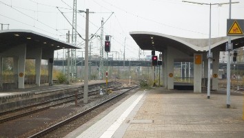 Von Gleis 7 in Richtung Empfangsgebäude fotografiert.