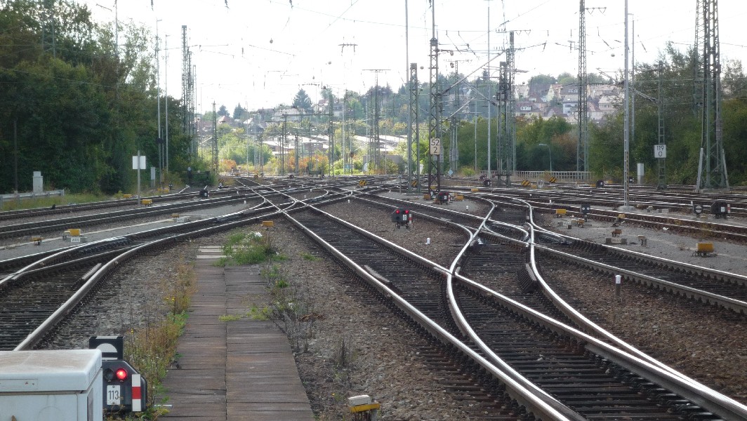 Blick vom Bahnhof aus auf die Kreuzungsweichen.