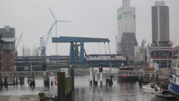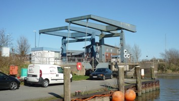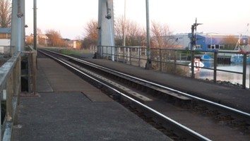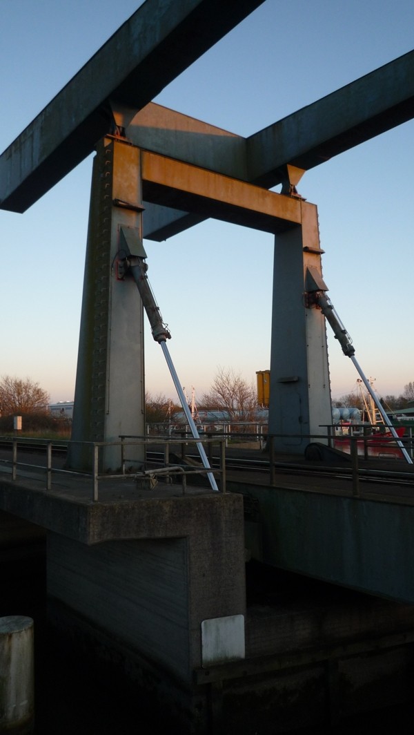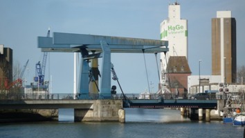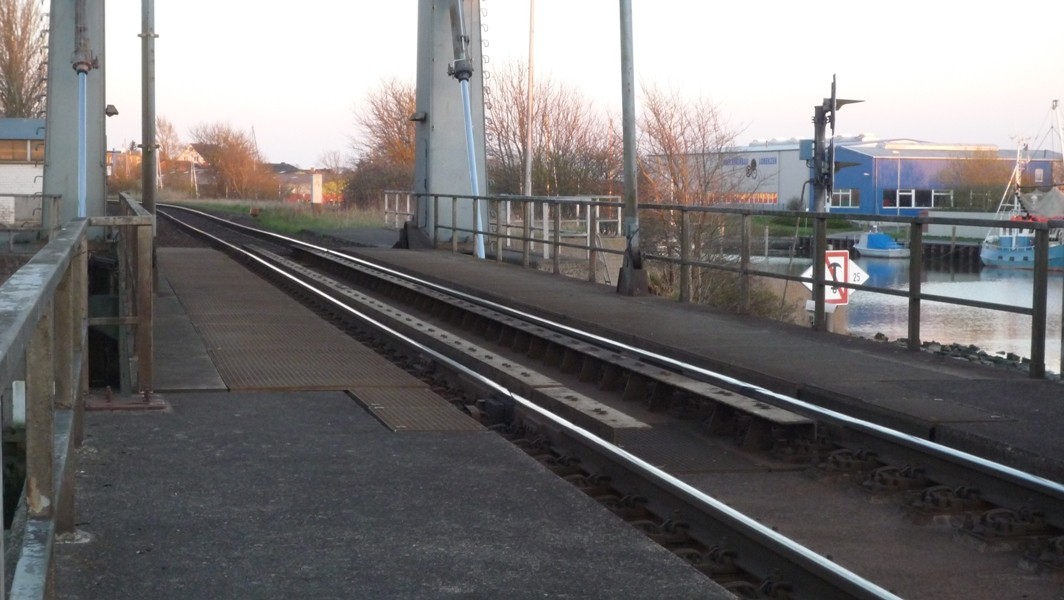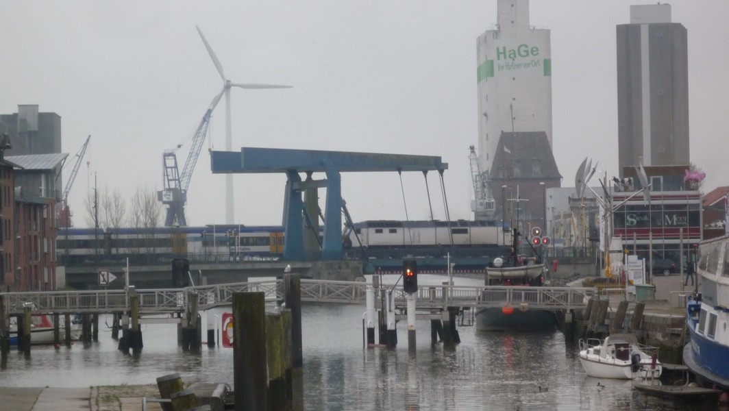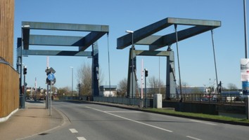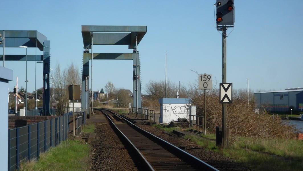 Sehr charakteristisch ist die Klappbrücke, die sich zwischen dem Bahnhof Husum und Husum Nord befindet. Sie überquert die Hafeneinfahrt