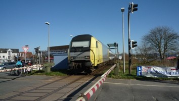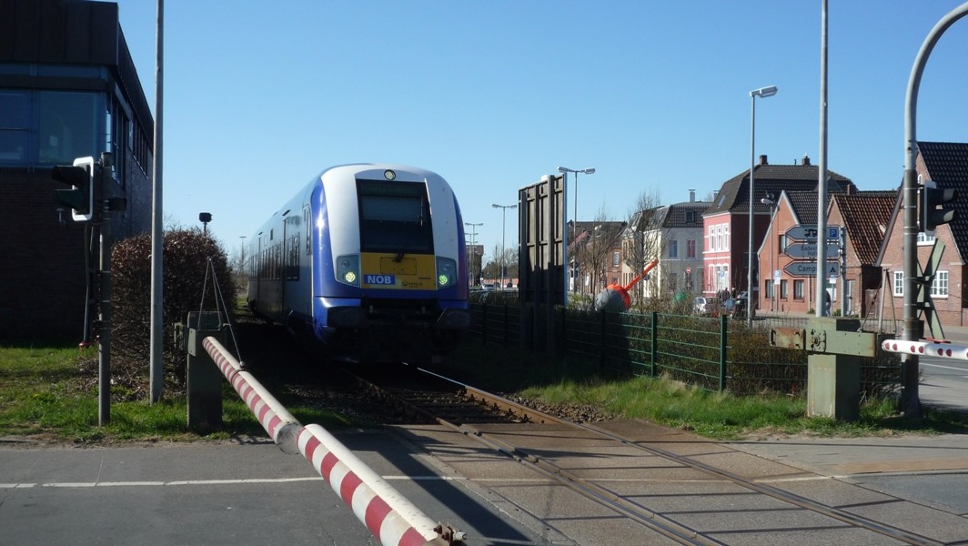 Einfahrt eines NOB Zuges Richtung Hamburg.