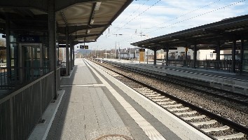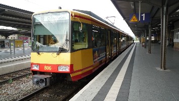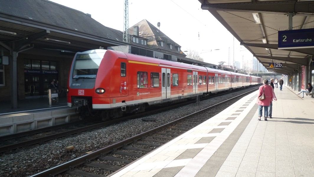 auf Gleis 1 ein und wechselt danach auf die Strecke nach Bruchsal.