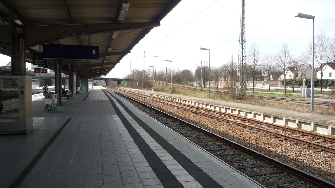 Blick von Gleis 6 in Richtung Nord-Osten (nach Bruchsal, Pforzheim)...