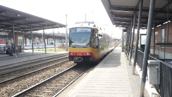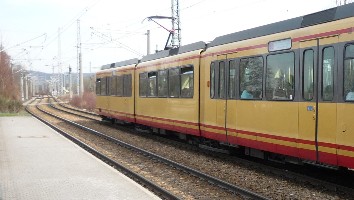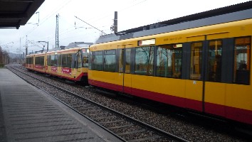 Auf der Fahrt vom Hbf. nach Durlach wurde die S3 Richtung Bruchsal, Mannheim, Germersheim fliegend vom TGV überholt. Daher fährt der Triebwagen