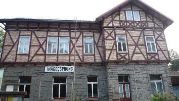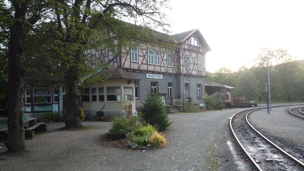 Der Bahnhof Mägdesprung ist an das Netz der Harzer Schmalspurbahnen angeschlossen und gehört zum Streckenabschnitt "Selketalbahn".