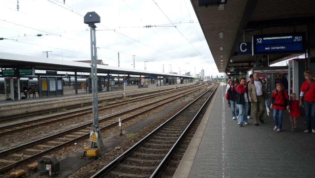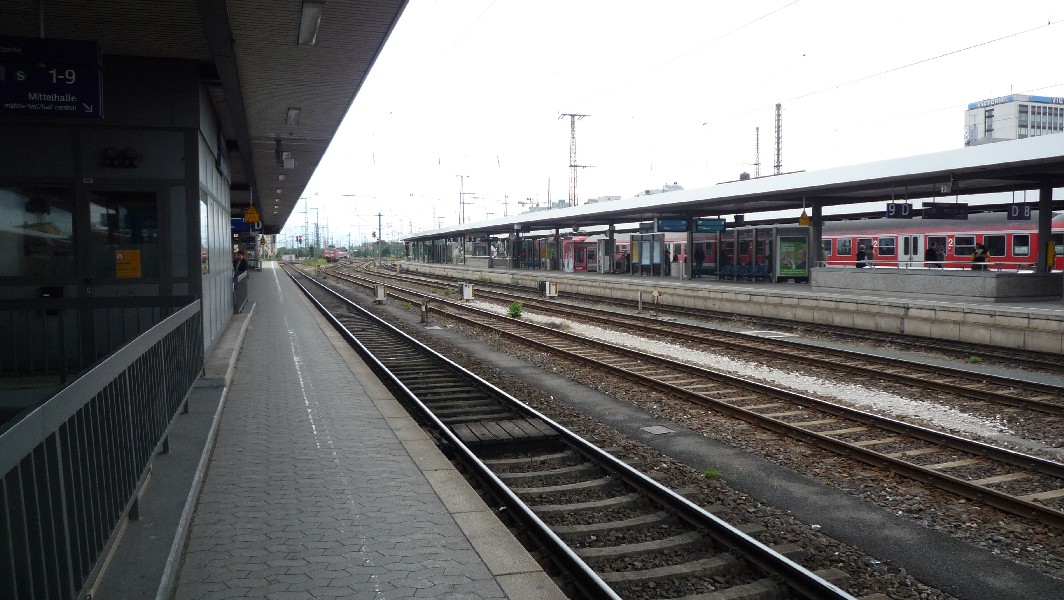 am allerletzten Bahnsteig. Die S-Bahnen 1 bis 3 fahren jedoch von den Gleis 1 bis 3 ab, daher muss man einen ordentlichen Fußmarsch