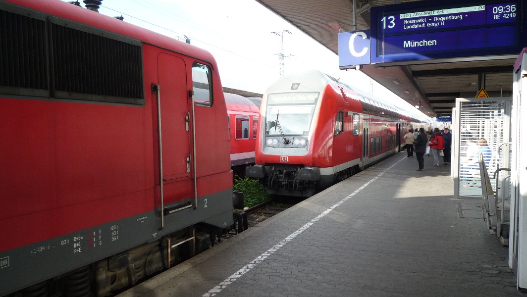 Parallel auf Gleis 13 steht hier der RE nach München über Regensburg und der RE nach Sonneberg über Bamberg.