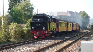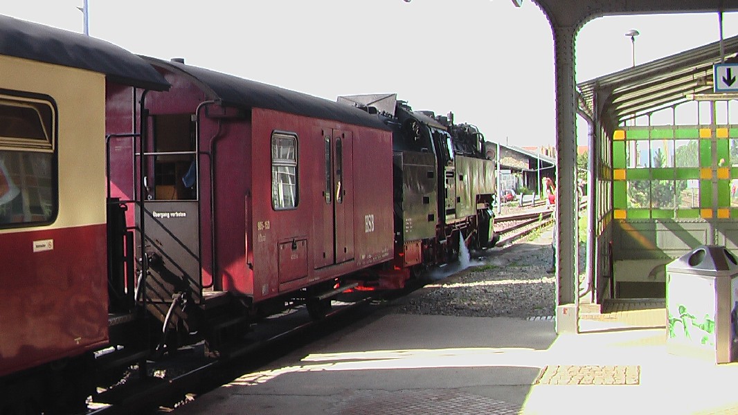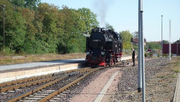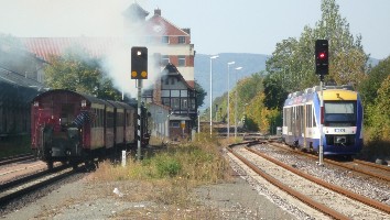 3 x am Tag hat man das besondere Erlebnis einer Parallelausfahrt. Nämlich um 08:30, 10:30 und um 15:30. Dann fährt sowohl die HSB Richtung Gernrode als auch der HEX nach Thale.
