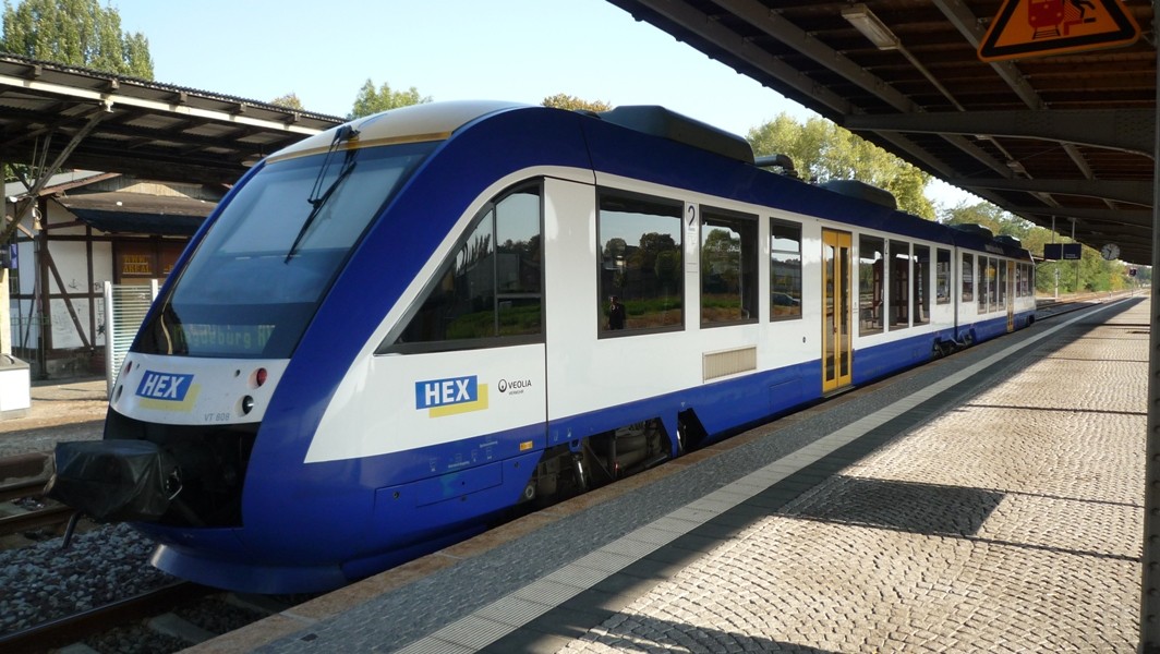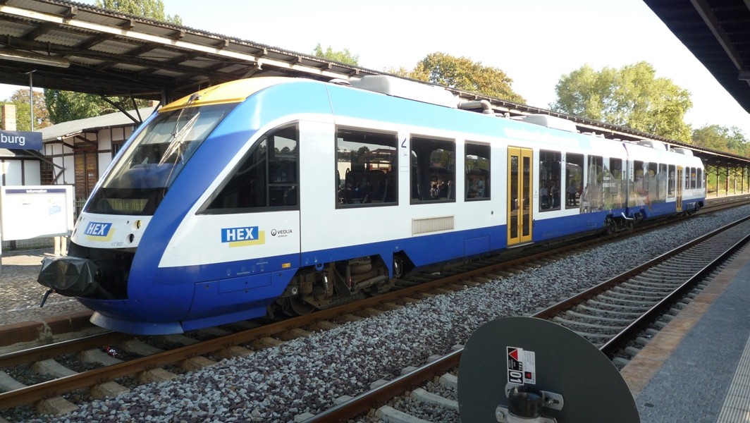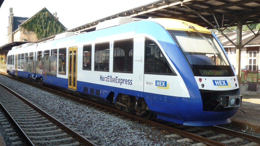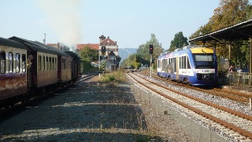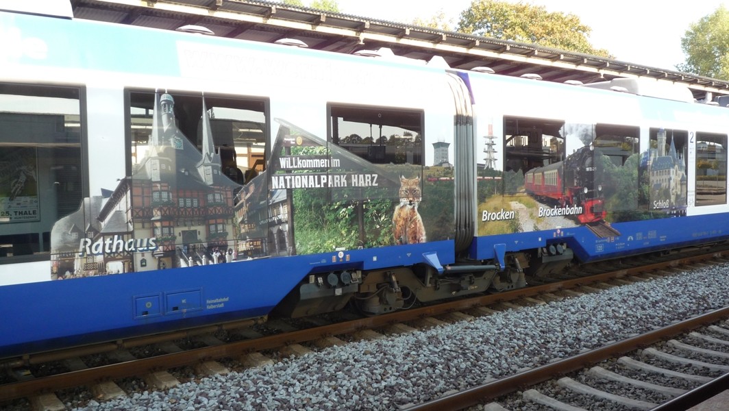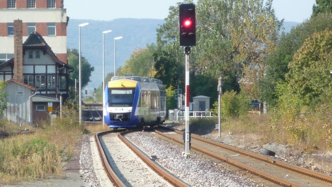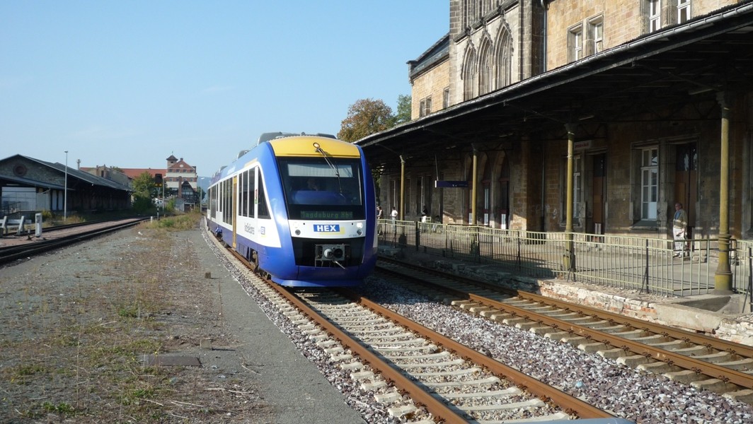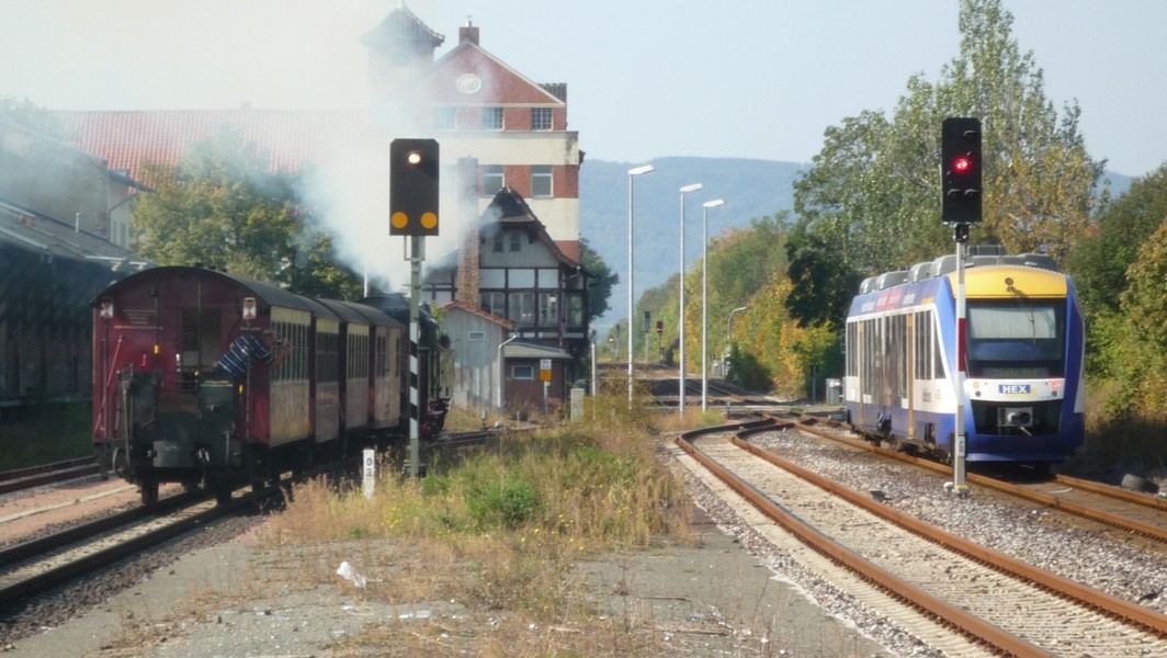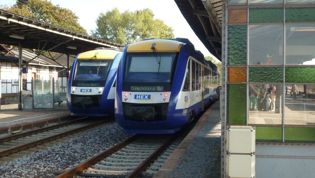 Auf den normalspurigen Gleisen treffen nun die beiden Lints ein. Quedlinburg ist ein Minute-30-Knoten.