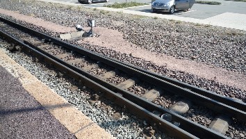 Vom Bahnübergang aus aufgenommen links das Normalspurgleis samt Ausweiche und rechts das Meterspurgleis.