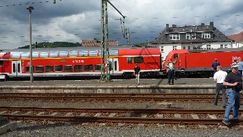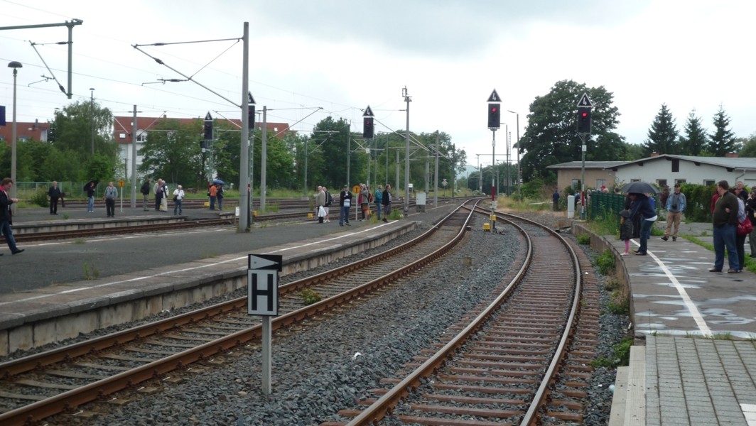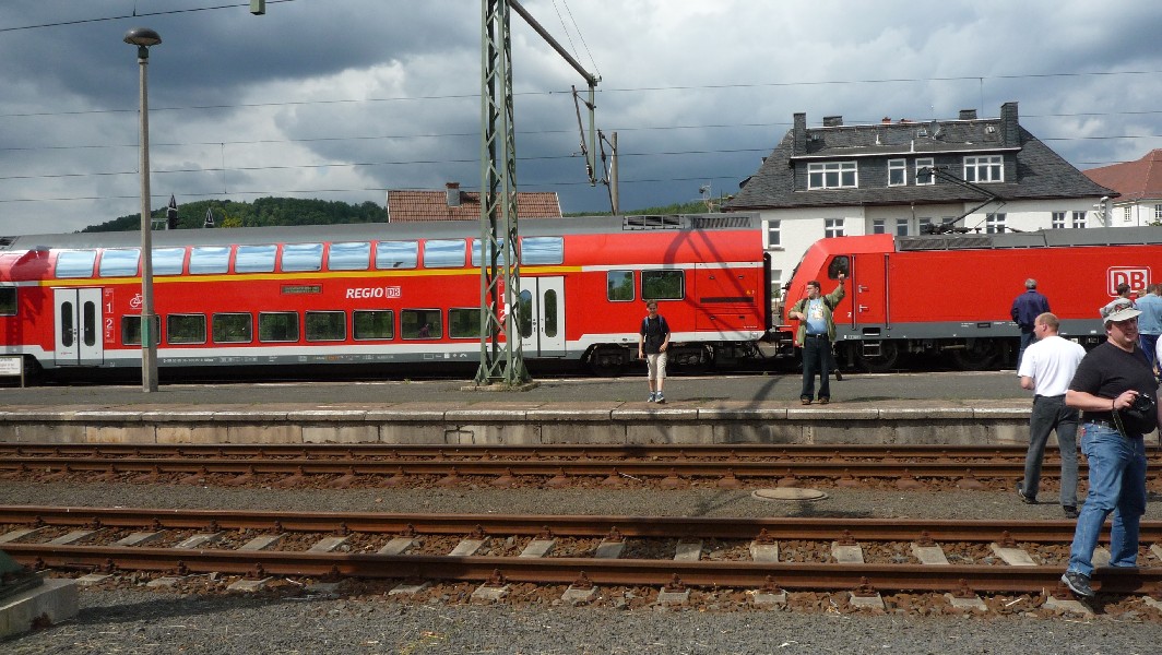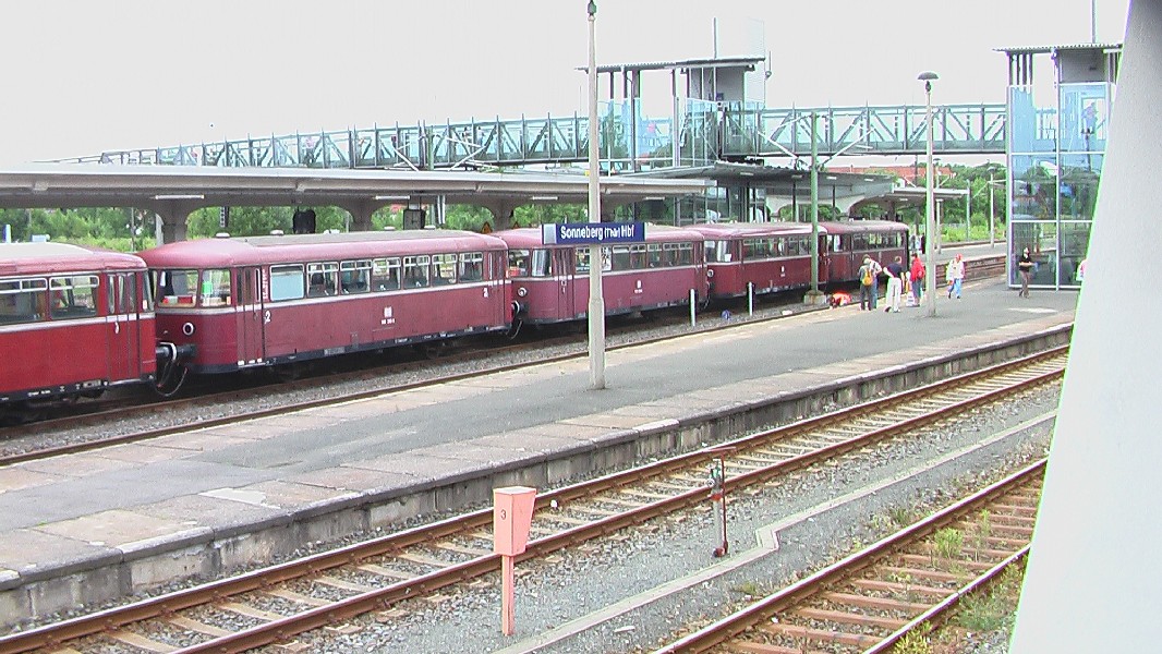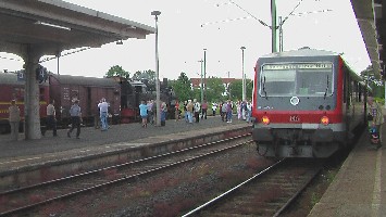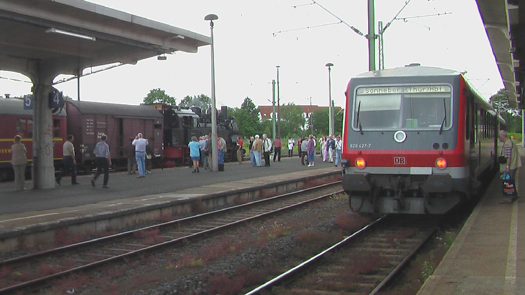 ... zum anderen ratterte der Dieselmotor, denn auch eine fünfteilige Schienenbusgarnitur mit Buffetwagen war zu Gast in Sonneberg.