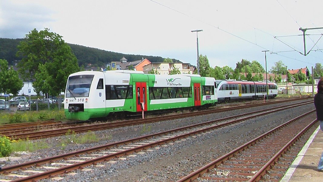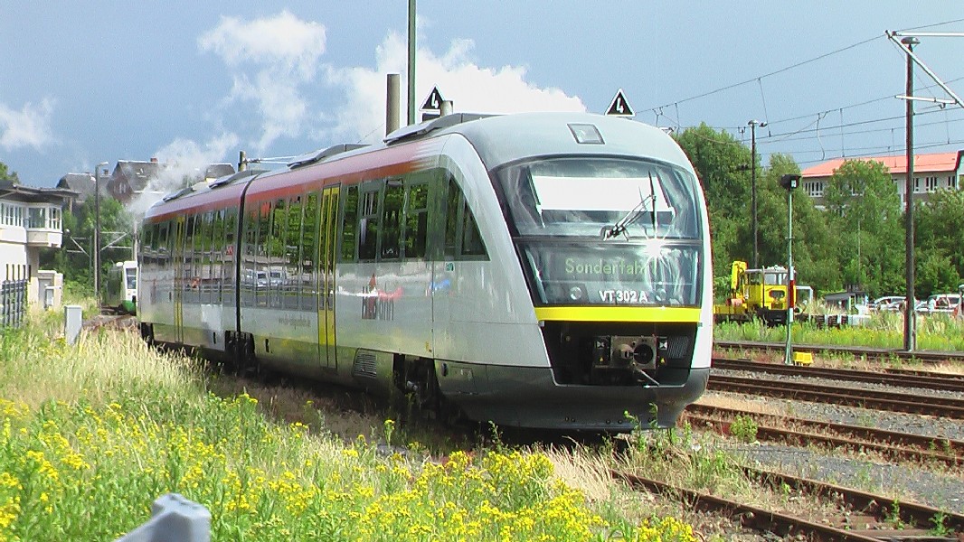 Aber auch ein modernes Fahrzeuge kam nach Sonneberg, wie dieser Desiro der Hessischen Landesbahn.