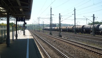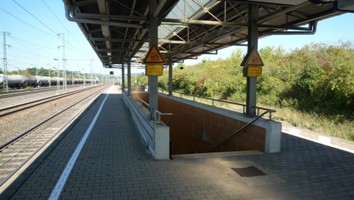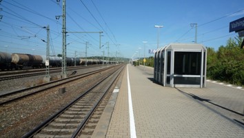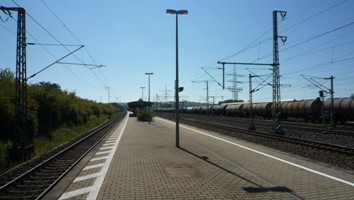 Zwischen den beiden Bahnsteigen liegen 2 Durchfahrgleise für die Fernzüge und zwei Überholgleise.