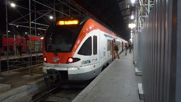 Der Gegenzug zum vorher gezeigten VIAS Flirt ist aus Frankfurt eingetroffen. Während der nun hintere Zugteil in Wiesbaden abgestellt wird,