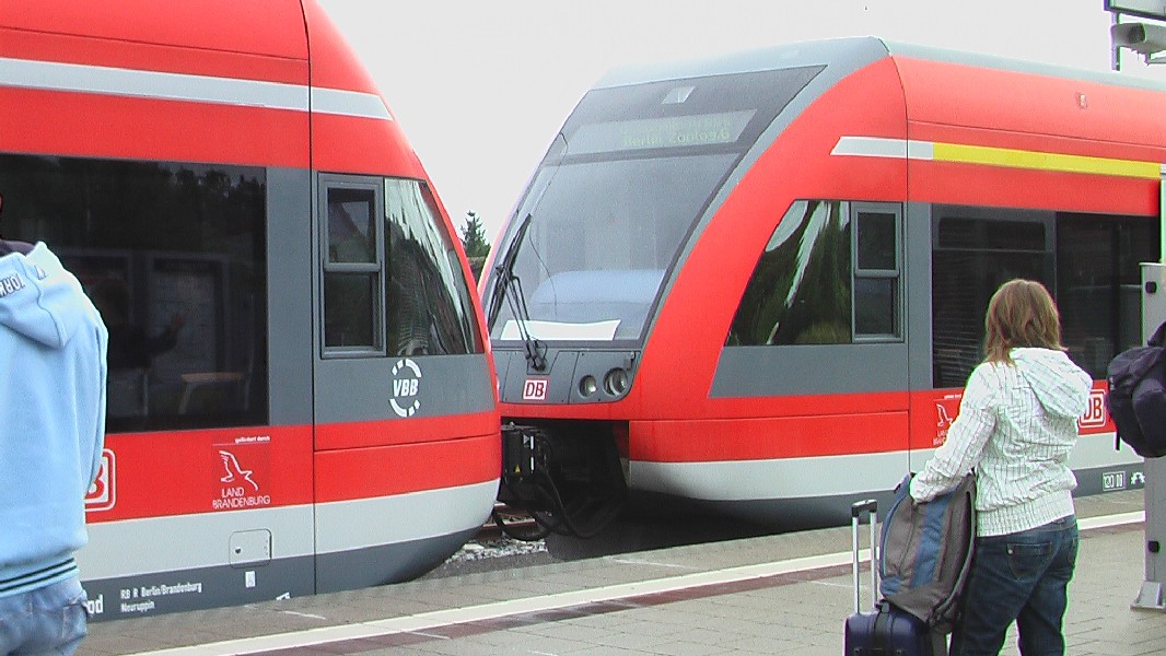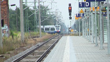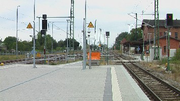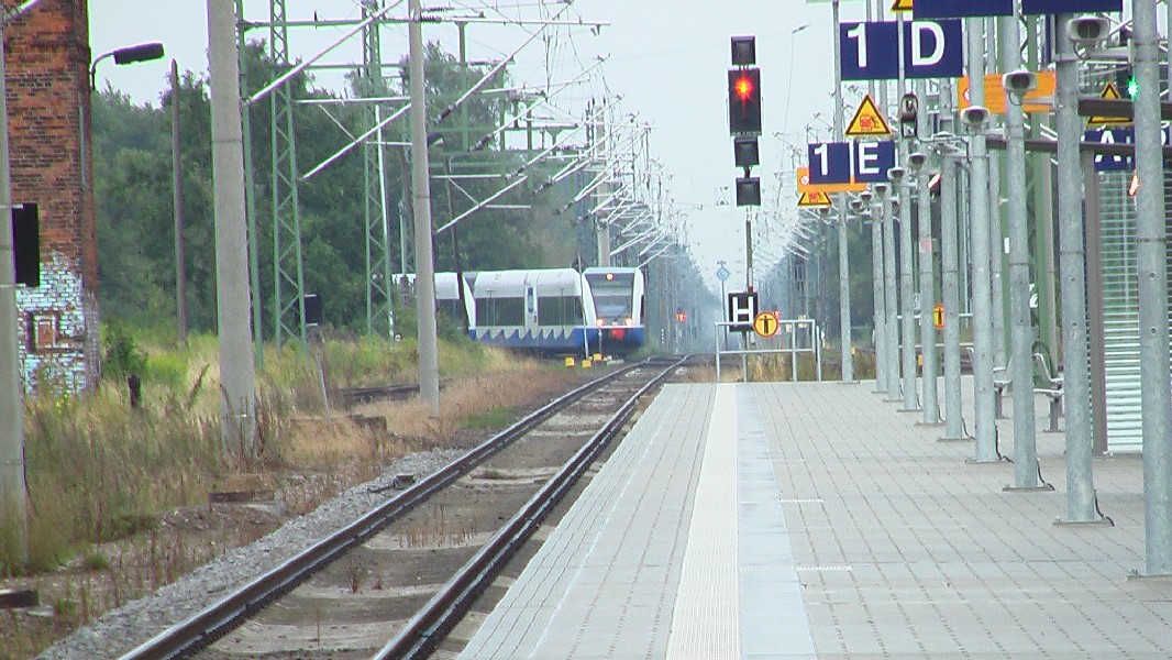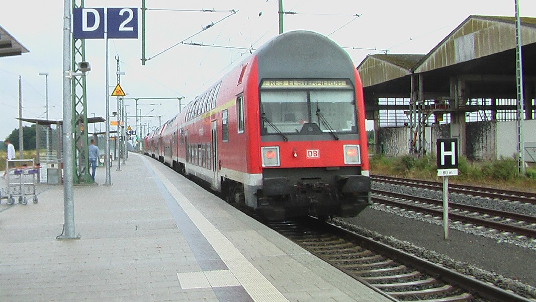 ... welcher sich gerade auf den Weg macht. Außer den letzten Spätzügen fahren alle REs bis Elsterwerda durch.
