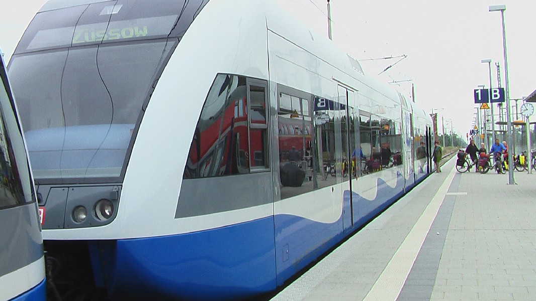UBB Triebwagen BR 646 hält in Züssow. Alle 2 Stunden hat man eine Verbindung nach Berlin mit dem RE...