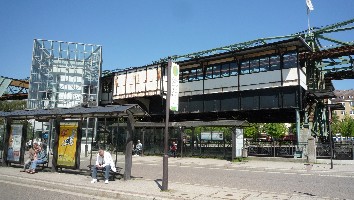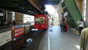 Ich bin am Endpunkt des östlichen Linienverlaufs angekommen. Der Bahnhof heißt "Oberbarmen". Die Bahn überquert nach einem kurzen Halt eine