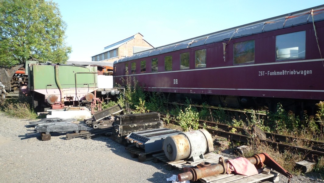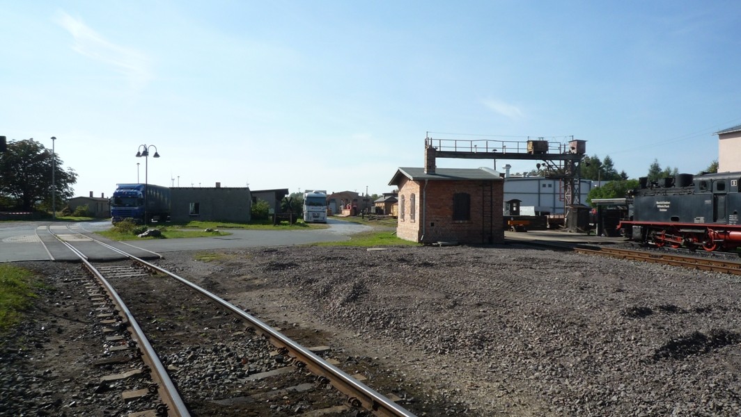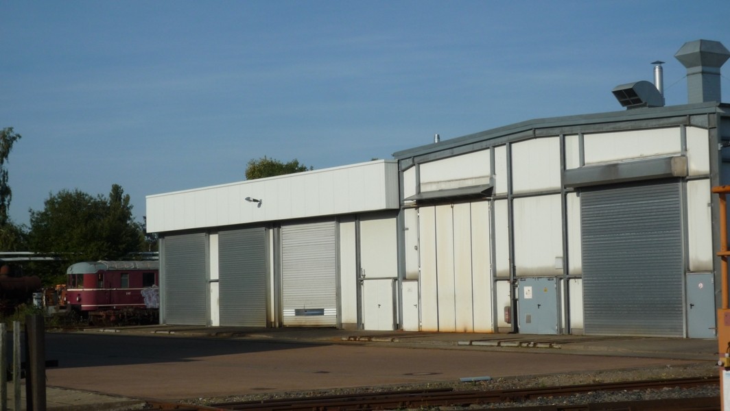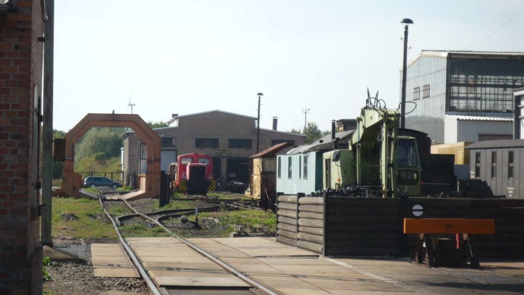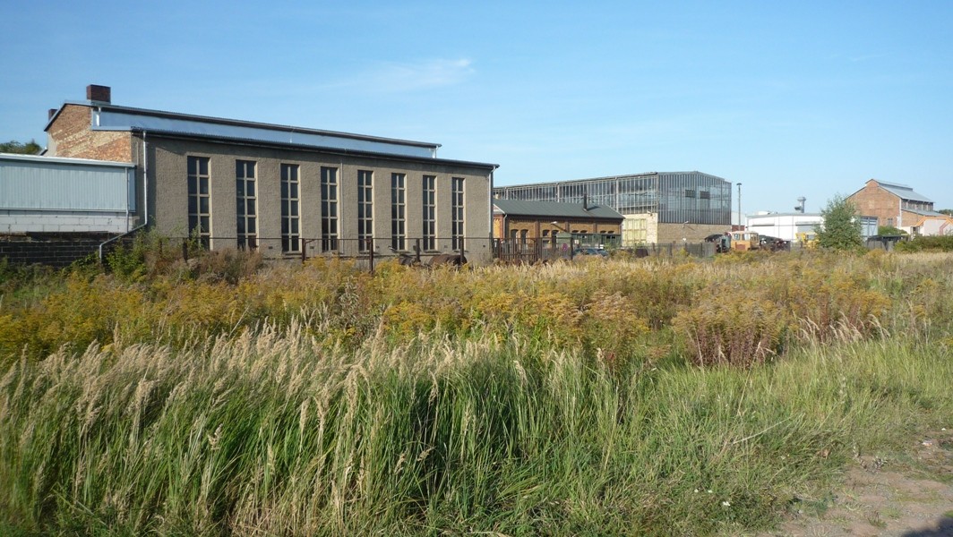Zum Abschluss ein Blick auf die Werkstattgebäude vom normalspurigen Abstellbereich Klostermansfeld aus.