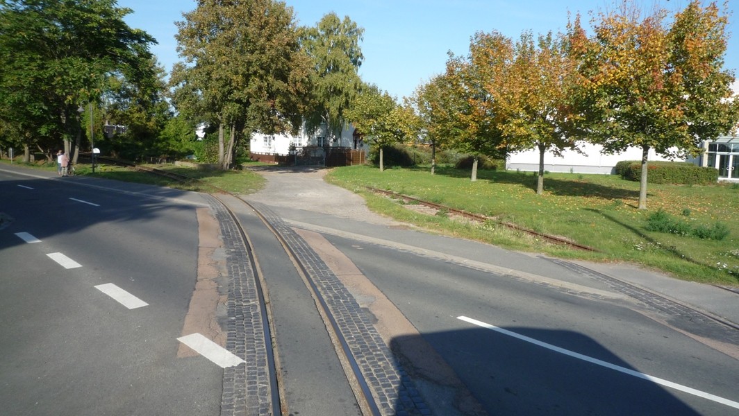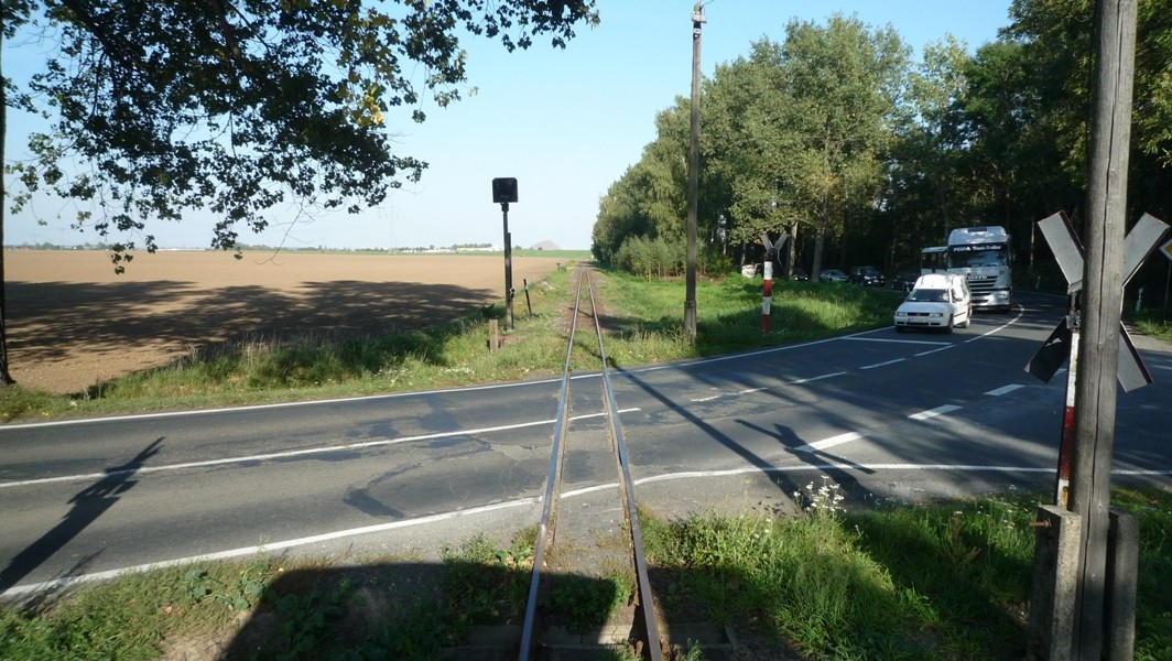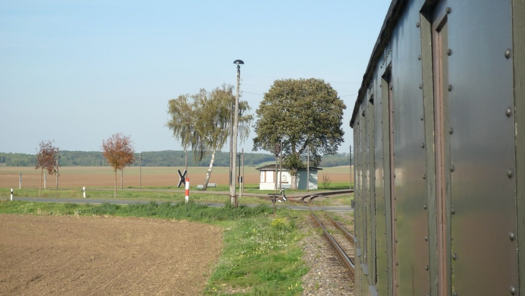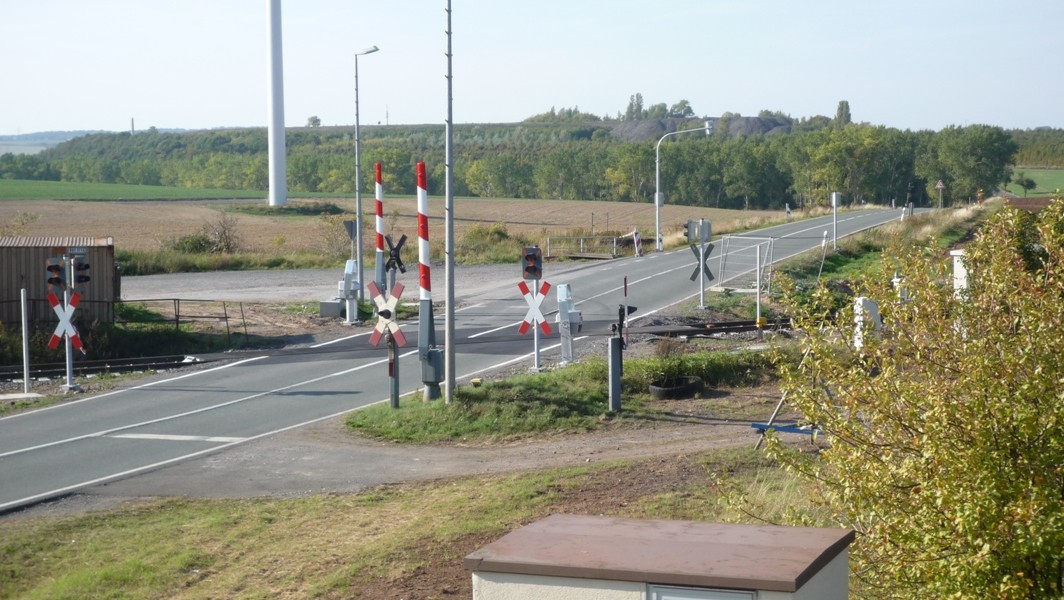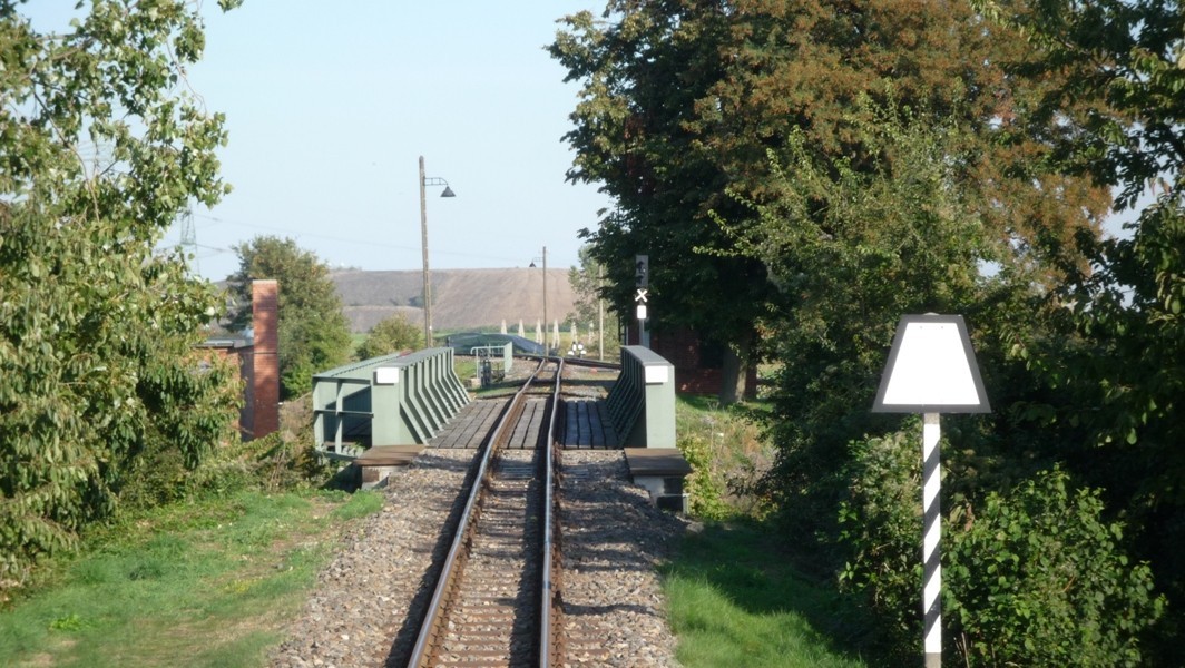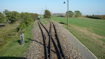 Nach 1 km Fahrt überquert man sowohl die Strecke der Wipperliese als auch die Strecke nach Güsten.