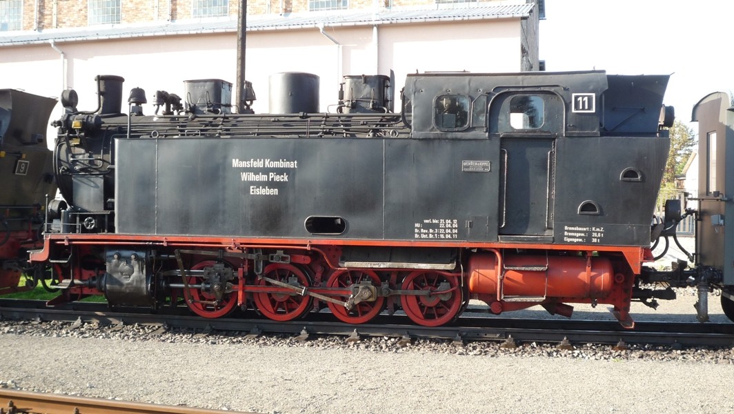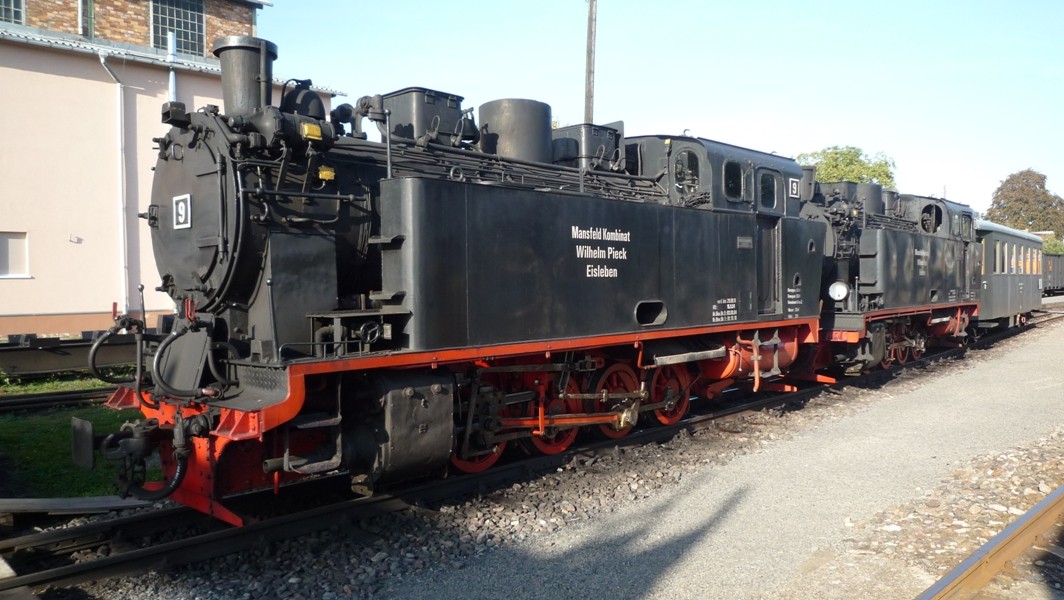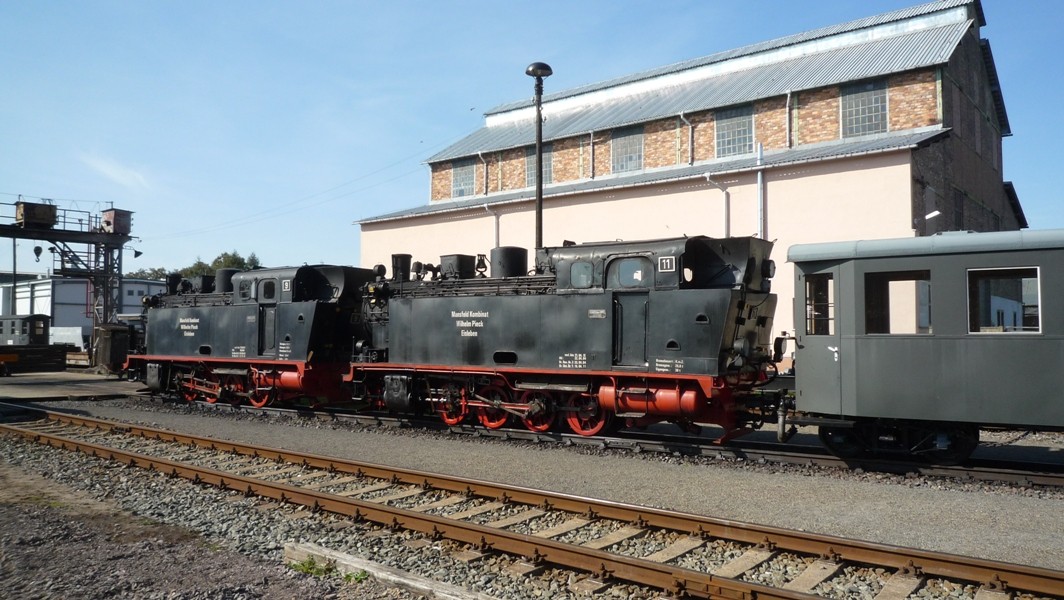 Im Mansfelder Land gab es große Vorkommen an Kupferschiefer, so dass man mit dem Bau einer Bergwerksbahn begann. Am 15. November 1880 wurde das umfangreiche Streckennetz eröffnet, das heute nur noch 11 km beträgt. Zur damaligen Zeit gehörte die Mansfelder Bahn zu den größten schmalspurigen Werksbahnen Deutschlands und beförderte zwischen Eisleben, Helbra und Hettstedt bis 1990 mit rund 350 Loks und über 800 Waggons die Arbeiter durchs Mansfelder Land. Bis zu 52 Personenzüge waren an einem Tag im Einsatz. Über 340 Beschäftigte kümmerten sich um das reibungslose Funktionieren der Eisenbahn des VEB Mansfeld Kombinat Wilhelm Pieck Eilsleben. Bis 1969 schlossen schließlich nach und nach alle Schächte im Mansfelder Land - die Bahn hat überlebt.