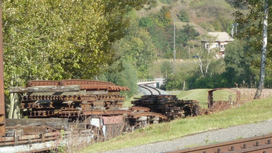 Man sieht das normalspurige Verbindungsgleis für den Rollwagenverkehr.