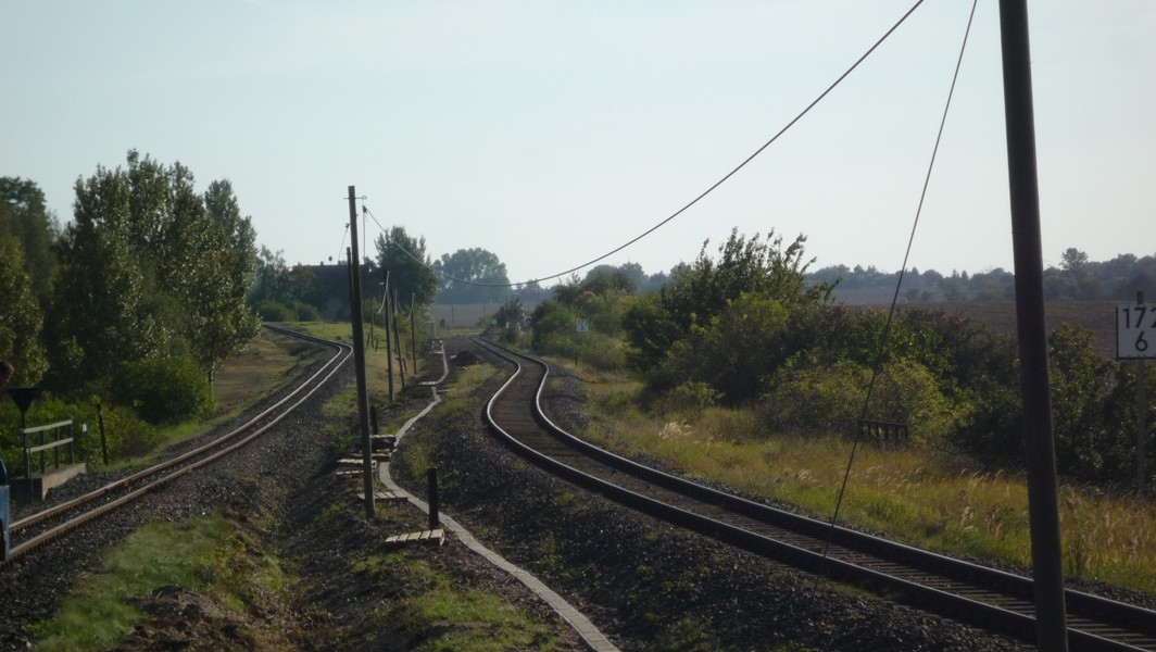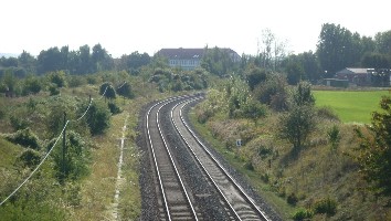 Das Verbindungsgleis zum Bahnhof Klostermansfeld.