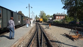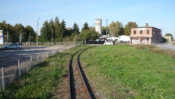 Rechts im Bild die normalspurigen Gleise, links sieht man den Bahnhof der 750 mm Schmalspurbahn.