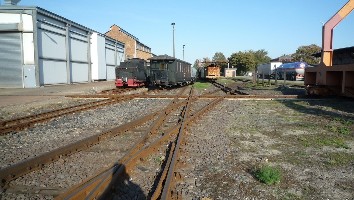 Der gerade Abzweig der Weiche soll demnächst auch weitergeführt und an den Lokschuppen angeschlossen werden. Derzeit ist nur ein Gleis mit dem Lokschuppen verbunden.