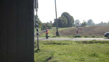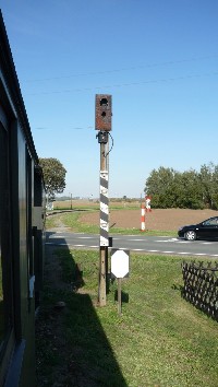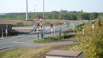 Der Bahnübergang an der Strecke wierd zur Zeit modernisiert. Ost-Andreaskreuze werden gegen moderne zweiphasige Lichtzeichenanlagen ersetzt.