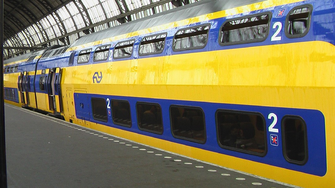 Der Doppelstocktriebwagen IRM (BR 8400) steht auch im Bahnhof.