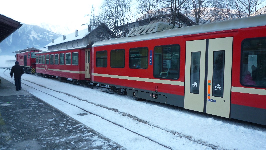Ein Zug nach Mayrhofen auf Gleis 2.