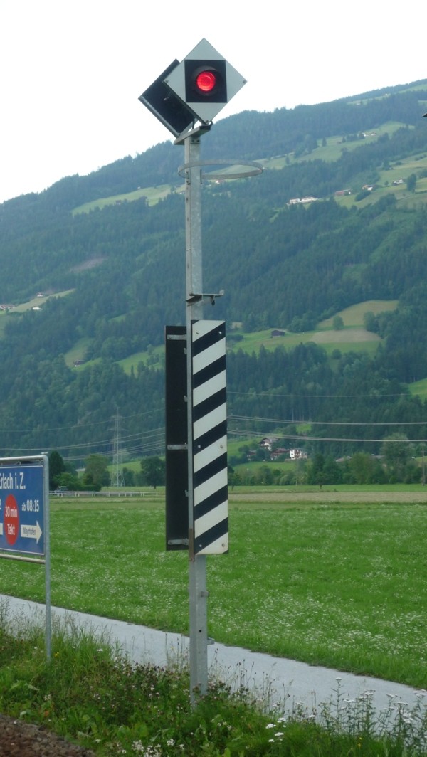Zillertalbahn klassische Hauptsignale vermissen. Es gibt eigentlich nur vier Signaltypen: Die Blinklichtsignale für