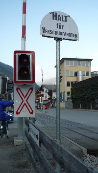 In Österreich sehen die beschrankten Bahnübergänge so aus: