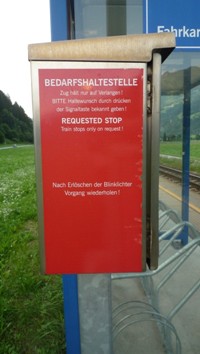 Dazu befinden sich am Bahnsteig zwei Taster, für jede Fahrtrichtung einer. Wird dieser gedrückt, so blinkt das Signal.